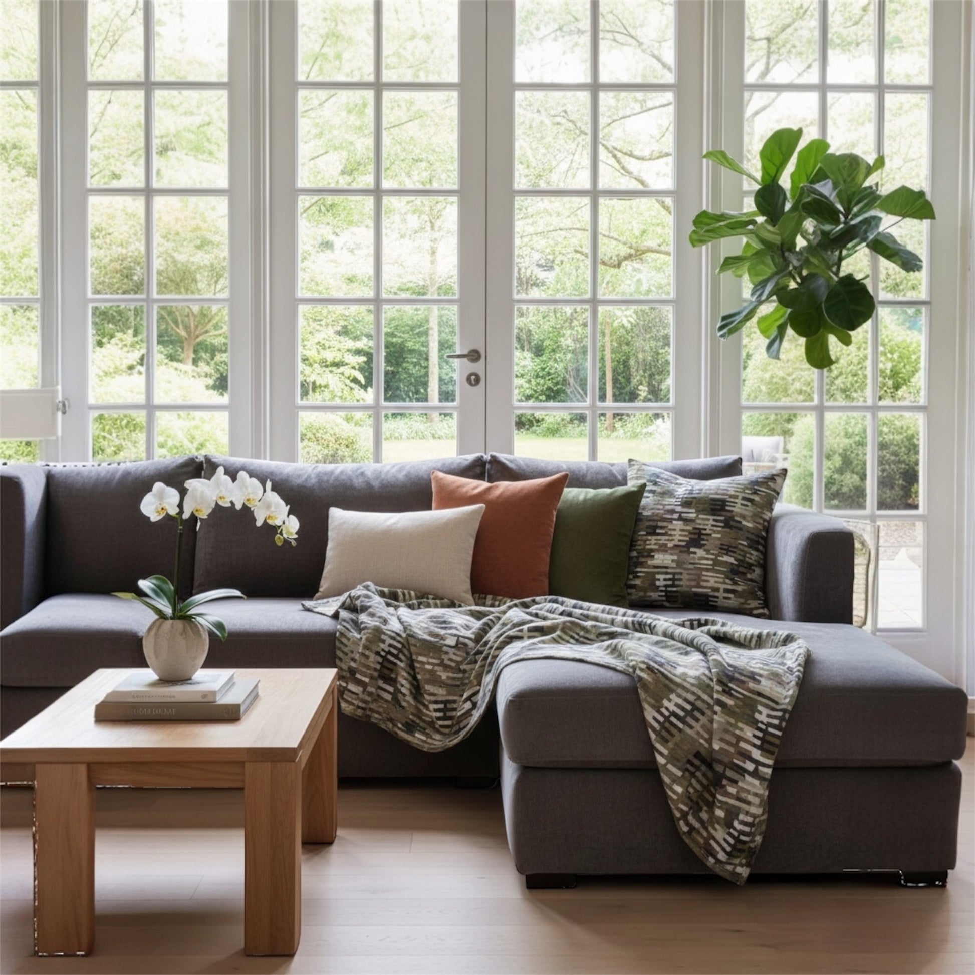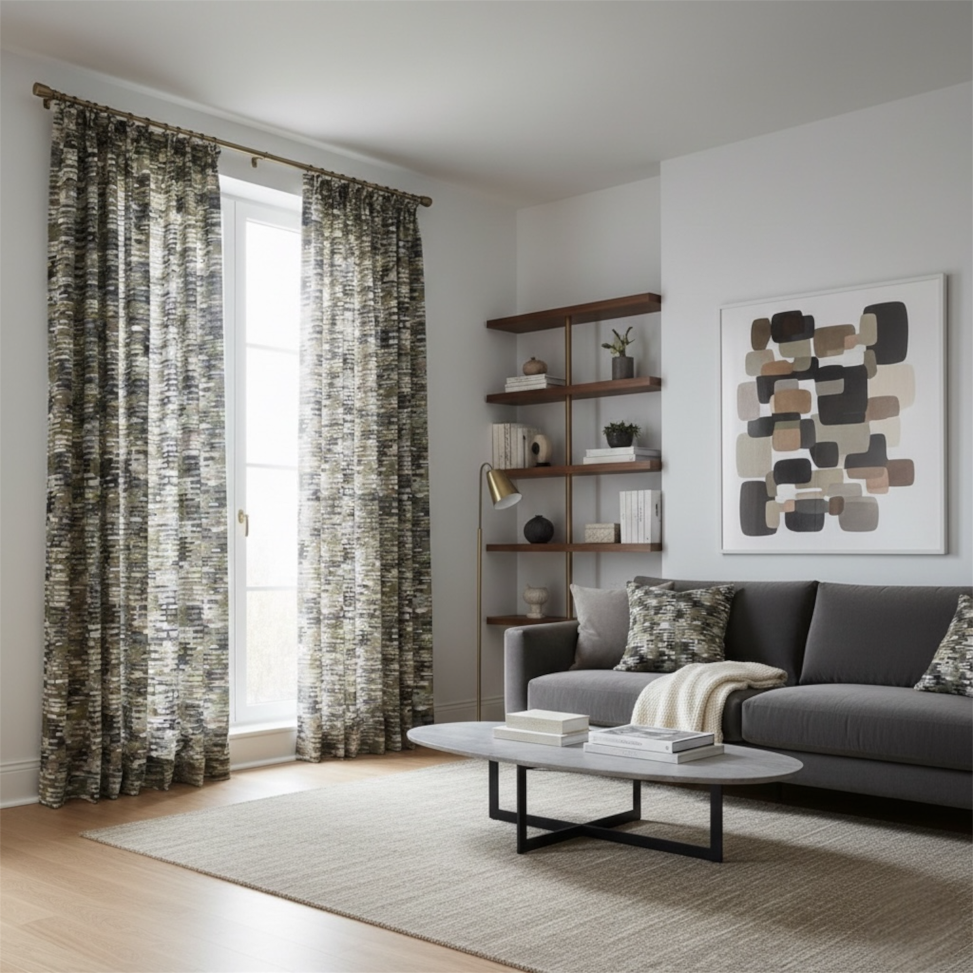 Printed on a premium linen blend, the fabric reveals subtle texture and depth, allowing the artwork to breathe naturally within interior spaces. Ideal for upholstery, cushions, curtains, throws and soft furnishings, it brings a sense of calm structure and artistic warmth to contemporary interiors.
